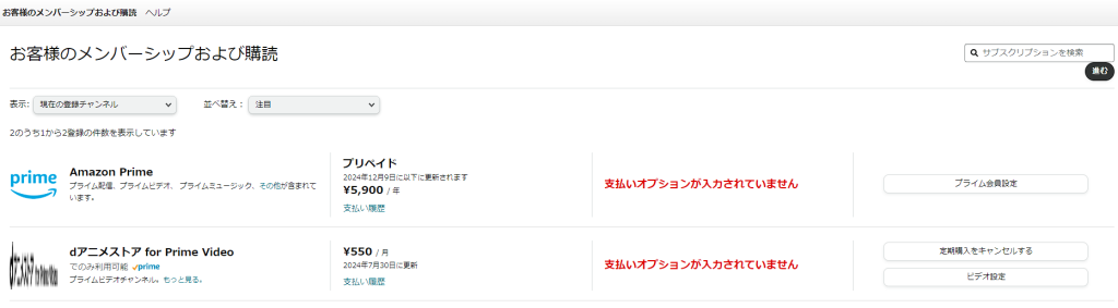 契約した場合には下記のようにAmazonのホームページから簡単に契約状況を確認出来ます。