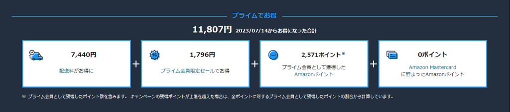 1年間でどれだけプライム会員でお得になったかを確認することが出来ます。